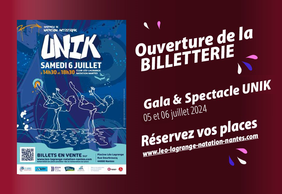 Comme chaque année, le Club Léo Lagrange est impatient de vous présenter son «  Gala jeunes »  et son «  Spectacle UNIK »  de Natation Artistique.